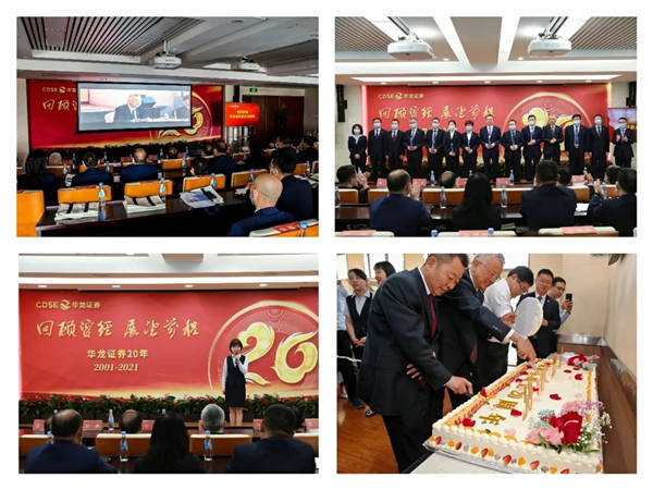 在場領導和參會人員觀看了公司成立20周年宣傳片。二十年的發展回首,有創業初期的艱苦磨礪,有艱難重組的新生喜悅,有穩步發展的欣欣向榮。一路走來,華龍證券秉持凝聚智慧、創造財富的理念,履行國企職責、體現市場價值,業務持續健康發展,資本規模穩步提升,已成長為經營穩健、資產優良的現代金融機構。