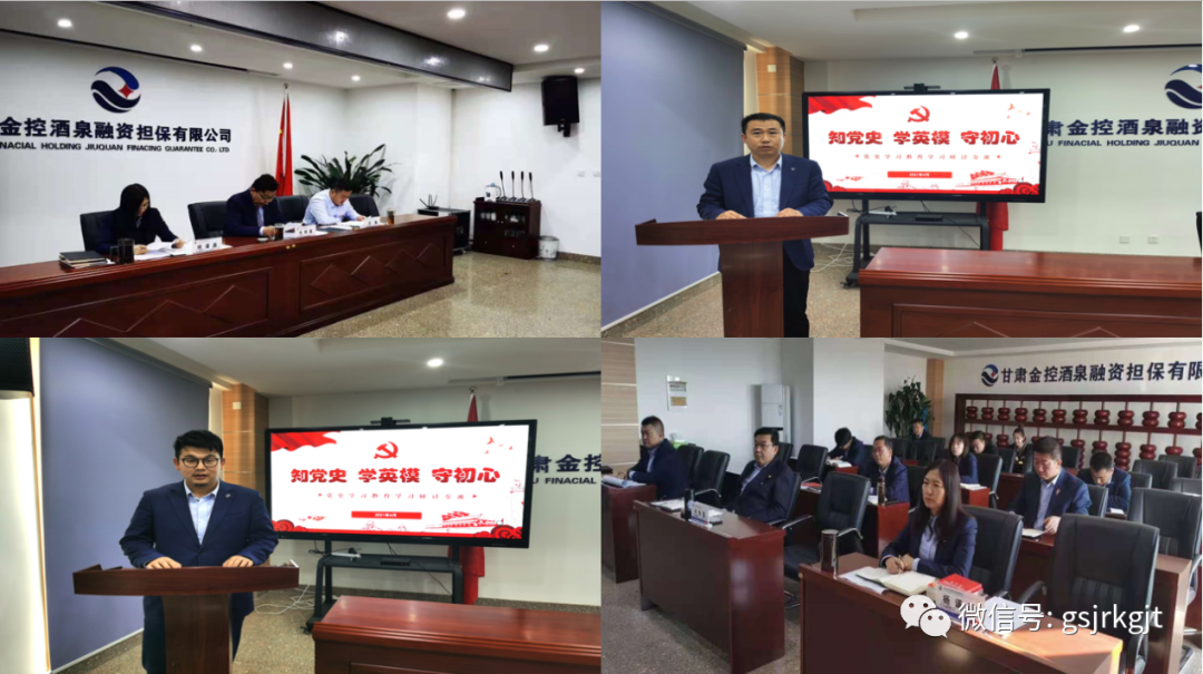 近日,金控酒泉擔保開展“知黨史、學英模、守初心”專題學習教育活動。集中學習了《中國共產黨簡史》第二章中九一八事變后的局勢和中央紅軍長征的開始、遵義會議和紅軍長征的勝利以及《論中國共產黨歷史》之把紅色基因傳承好,把紅色江山世世代代傳下去相關章節內容,觀看了《時代楷模——八步沙“六老漢”》英模事跡宣傳片,并圍繞“知黨史,學英模,守初心”交流發言。會議強調,要突出學以致用,確保教育實效。要把開展黨史學習教育與為員工辦實事、解難題,與推進公司年度重點工作結合起來,通過學黨史汲取智慧,將學習真正轉化為推動干事創業的強大精神力量。