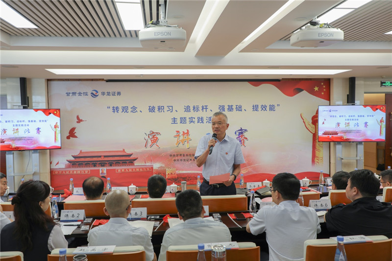 金控集團(tuán)黨委書(shū)記、董事長(zhǎng),華龍證券黨委書(shū)記、董事長(zhǎng)陳牧原致辭,指出在這個(gè)特殊的日子里,我們開(kāi)展主題黨日活動(dòng)和演講比賽,恭賀中國(guó)共產(chǎn)黨成立99周年,意義重大。同時(shí)強(qiáng)調(diào),集團(tuán)黨委針對(duì)經(jīng)營(yíng)管理中顯現(xiàn)的一些問(wèn)題,在全系統(tǒng)開(kāi)展“轉(zhuǎn)觀念、破積習(xí)、追標(biāo)桿、強(qiáng)基礎(chǔ)、提效能”主題實(shí)踐活動(dòng),倡導(dǎo)廣大員工以自我革新的勇氣,破除企業(yè)行政化、機(jī)關(guān)化的積習(xí)陋習(xí),樹(shù)牢市場(chǎng)經(jīng)營(yíng)觀念,對(duì)照標(biāo)桿,俯身抬頭干實(shí)事,提高效能強(qiáng)執(zhí)行,勇于進(jìn)取,奮勇?tīng)?zhēng)先,創(chuàng)造更好的業(yè)績(jī),為黨旗添彩,為黨的生日獻(xiàn)禮。